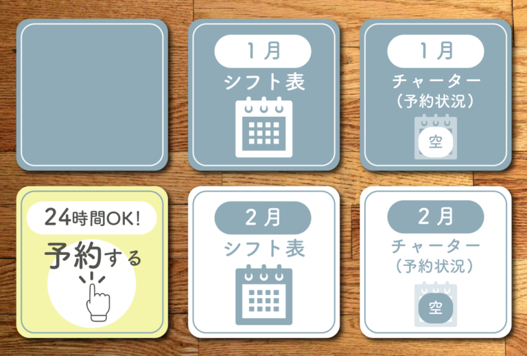 ターゲット層:シフト設定をする勤務者60代以上概要: 勤務シフトをLINEにて選択するためのリッチメニューデザインを制作しました。担当範囲: デザイン構成設計 / デザイン制作 ポイント:ターゲット層が60代のため、オシャレでありながら木目を使った落ち着いたデザイン、水色を使用したボタンのデザインを採用しました。